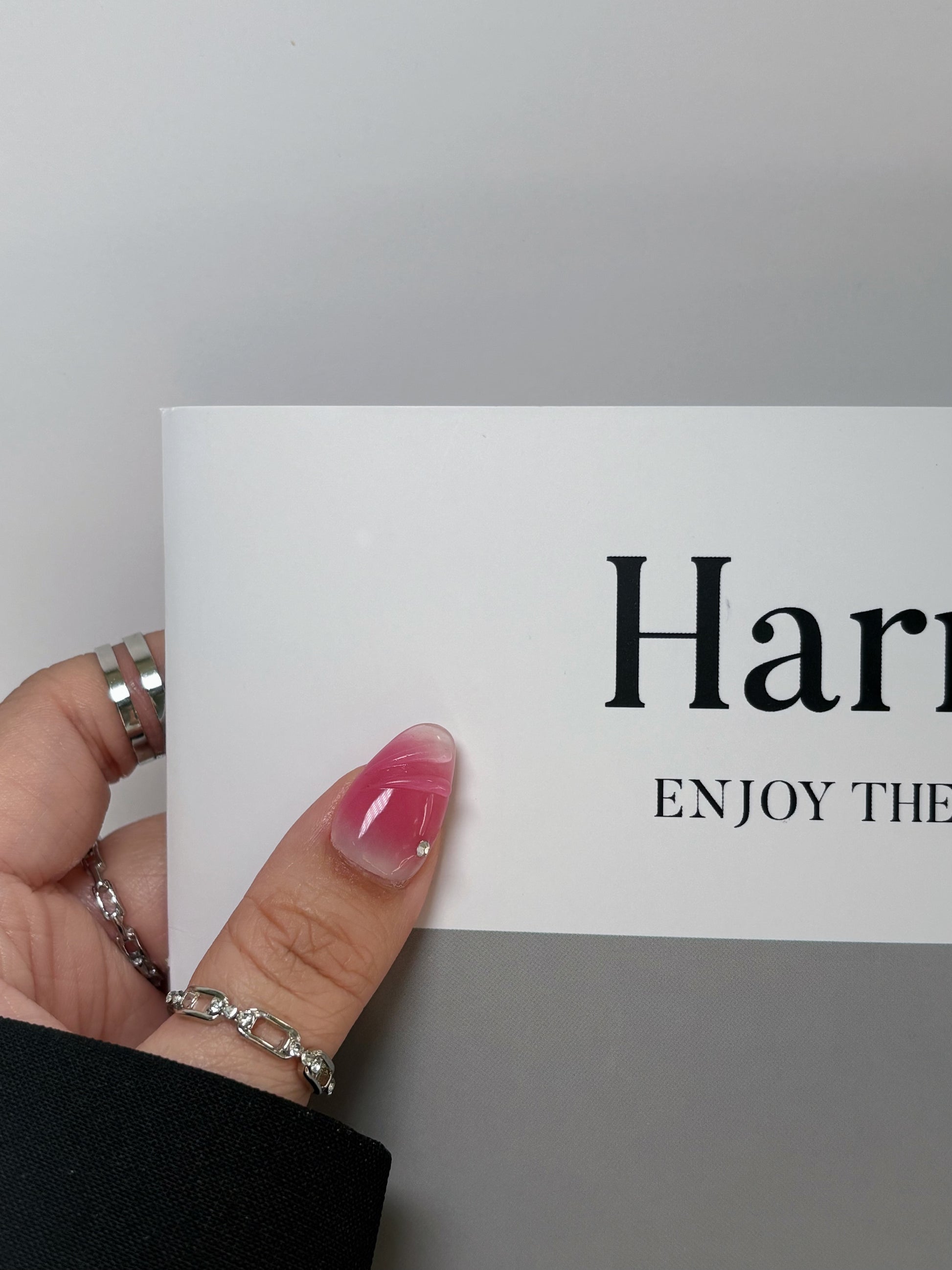 After placing the adhesive tab on your natural nail, use a hairdryer to warm up the adhesive strip for 15–20 seconds. Then remove the transparent film, align the press-on nail carefully, and press down firmly for a secure hold.