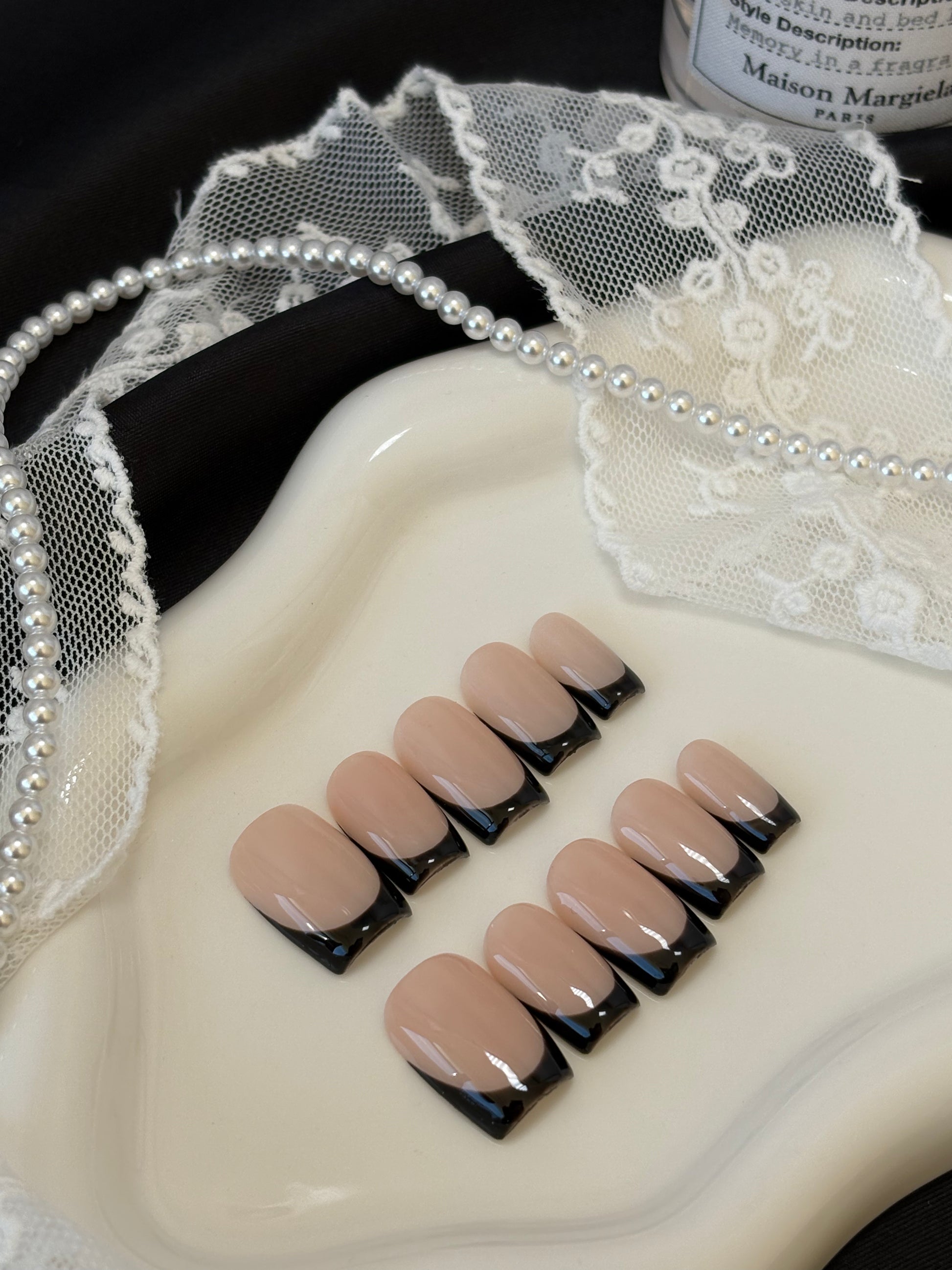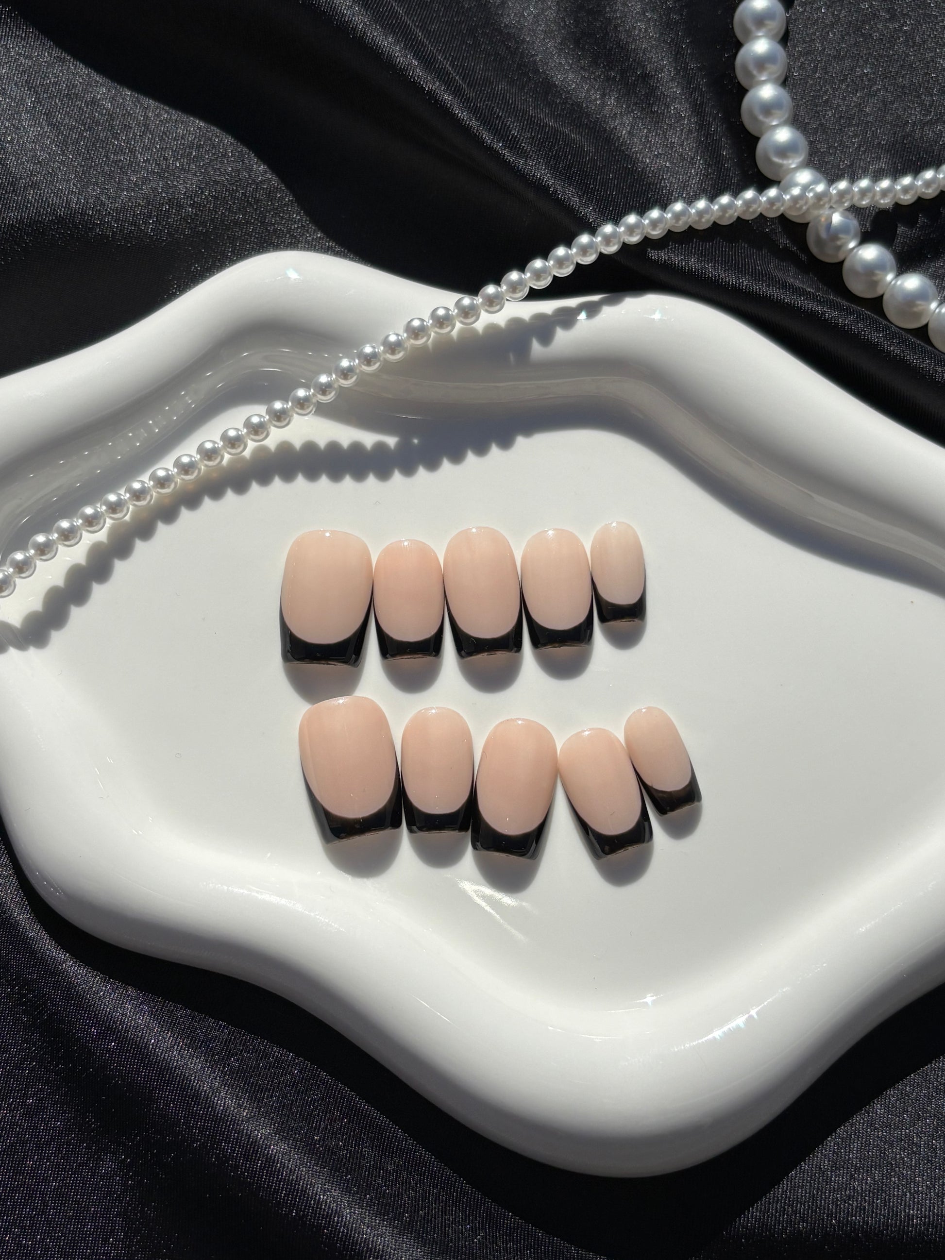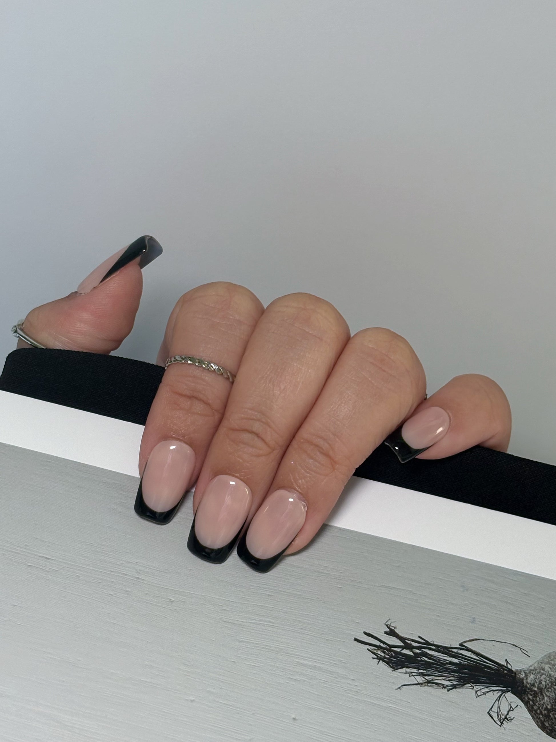 Midnight Martini serves up a sophisticated nude base topped with inky black French tips, delivering a cocktail of elegance and edge. Perfect for nights out, special occasions, or whenever you want your nails to make a confident statement, this set adds just the right amount of drama — shaken, not stirred.