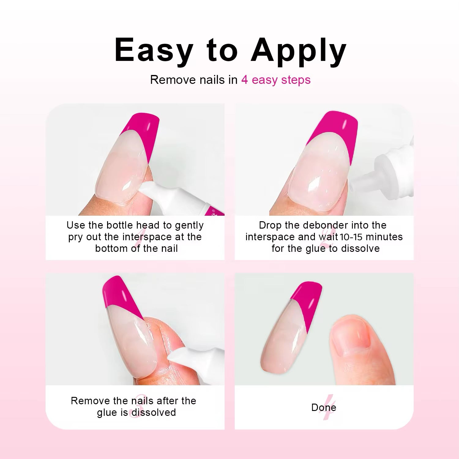 Pop, glide, done! ON | OFF Nails Precision Nail Glue Remover (10ml) makes removing your press-ons a total breeze. Just squeeze, swipe, and let the magic happen — no acetone, no fuss. Packed with Vitamin E for a soft, pampered feel, it’s your secret weapon for switching up styles anytime you want.